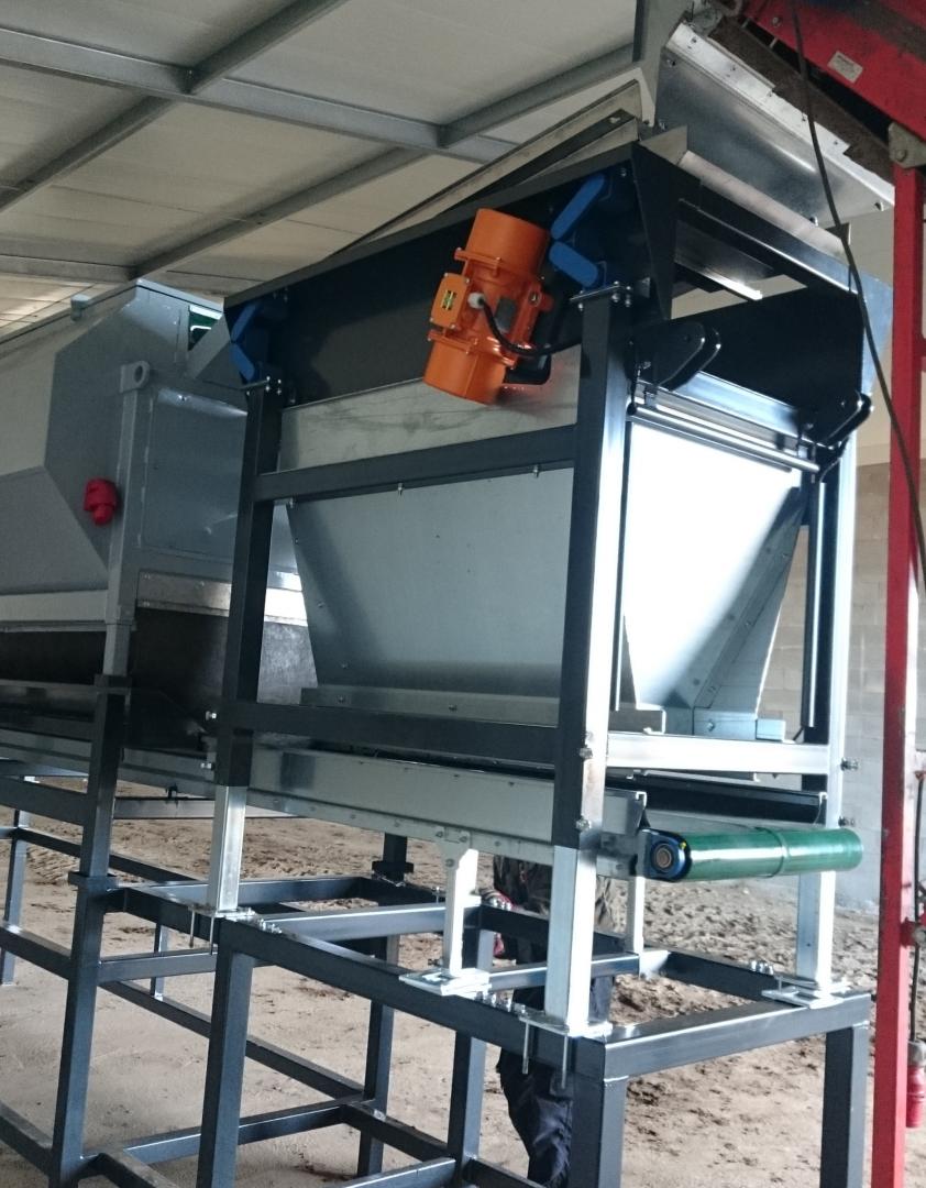 Urządzenie, które wspomaga pracę i zwiększa wydajność obcinarki śmigłowej do cebuli. Służy do prostego i szybkiego oddzielenia niewymiarowych produktów, gleby od produktu oraz luźnych łupin. Urządzenie posiada sito, podobnie wykonane jak przy obcinarkach śmigłowych. Silniki wibracyjne oraz odpowiedni kąt ich zamocowania sprawia, że cebula jest sprawnie transportowana oraz równomiernie rozłożona na płaszczyźnie sita, dzięki czemu obcinarka równomiernie zaopatrywana jest w produkt.